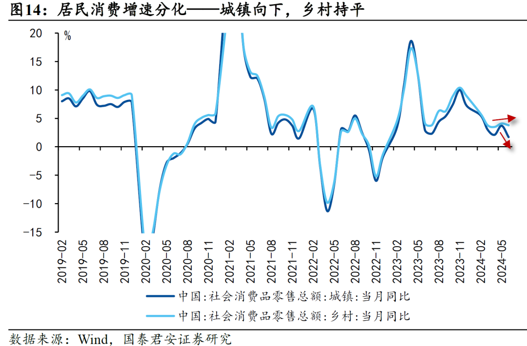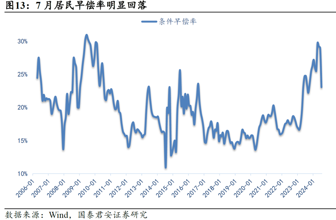 二是7月核心CPI动能偏弱,居民整体消费意愿仍待修复。尤其是在CPI季节性重塑后,预计8月的环比动能较7月更弱。我们跟踪的RMBS居民早偿率指数显示,7月居民早偿率明显回落,反映居民修复资产负债表的趋势在减弱,我们认为这并非由于资产负债表修复的动机有所转变(房价仍未出现拐点),而是资产负债表修复的能力在露出疲态(表现为城镇居民消费增速与乡村产生分化)。